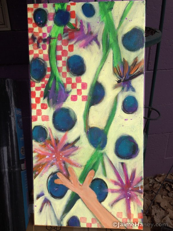 I’m still working on it, but I have more of an idea of the direction I want it to go now. Sometimes, I just start laying down paint and wait for the painting to tell me where to go. It does.